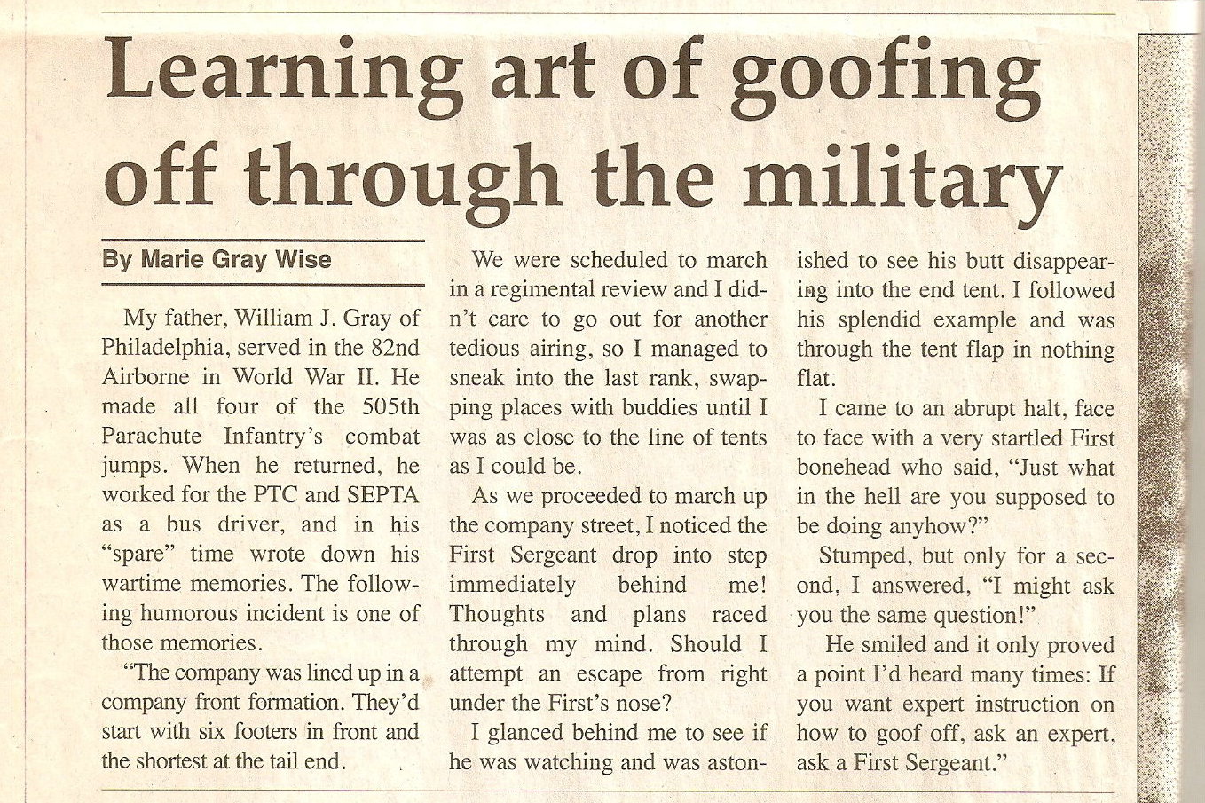 phia newspapers held a contest in an effort to preserve the wartime stories of Philadelphia area residents. I entered the following story for my dad under the title “Ask a First Sergeant”. The Philadelphia Tribune changed the title and published it in September 2007.