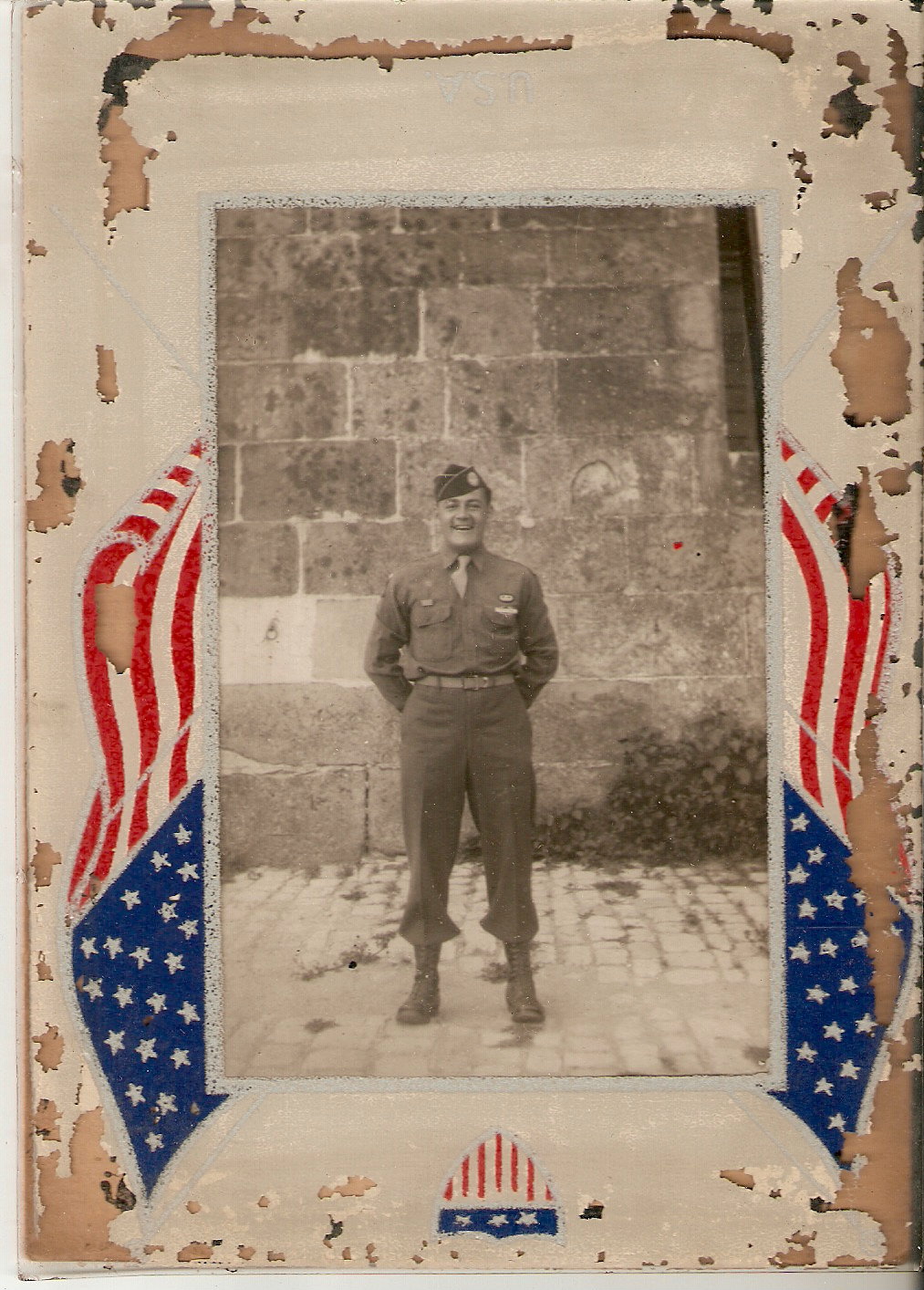 He sent this photo in this frame to Aunt Margaret Gray Charlton. On the back he wrote: To my dearest Colleen, Maggie. Love, Billy.